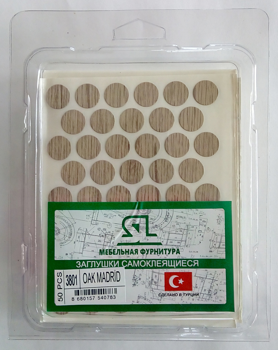 Заглушки 14мм под конфермат самоклеющиеся, Дуб Мадрид KP D 3801 купить в магазине мебельной фурнитуры https://rmkmasterium.ru/