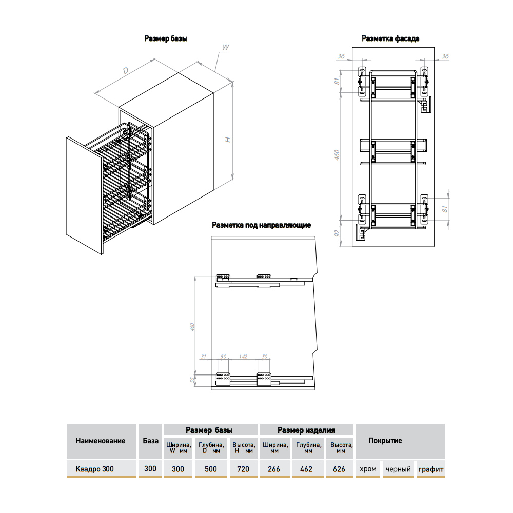 Размер базы (ШхГхВ): 300 х 500 х 720 мм