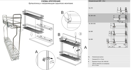 Корзина выкатная двух. (бутылоч) в ниж. базу левый монтаж фасад 200мм 465*200 BLUM HUDL PREMIUM купить в магазине мебельной фурнитуры https://rmkmasterium.ru/