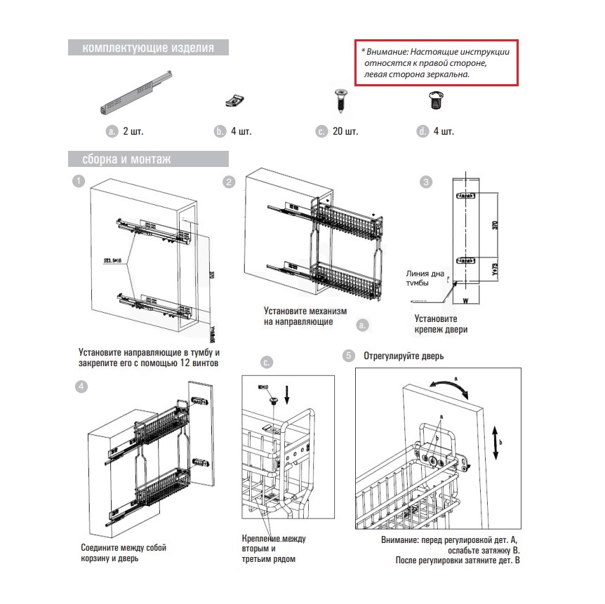 Крепление направляющих: справа.