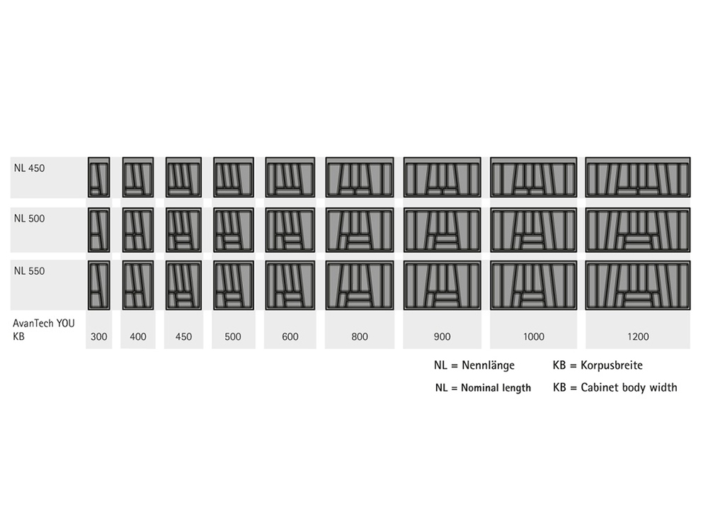 Внутренние организации OrgaTray обеспечивают рациональное распределение пространства ящика, идеальный порядок и удобное хранение содержимого
