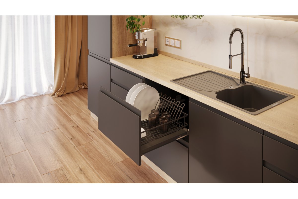 В конструкции посудосушителя предусмотрена регулировка фасада: