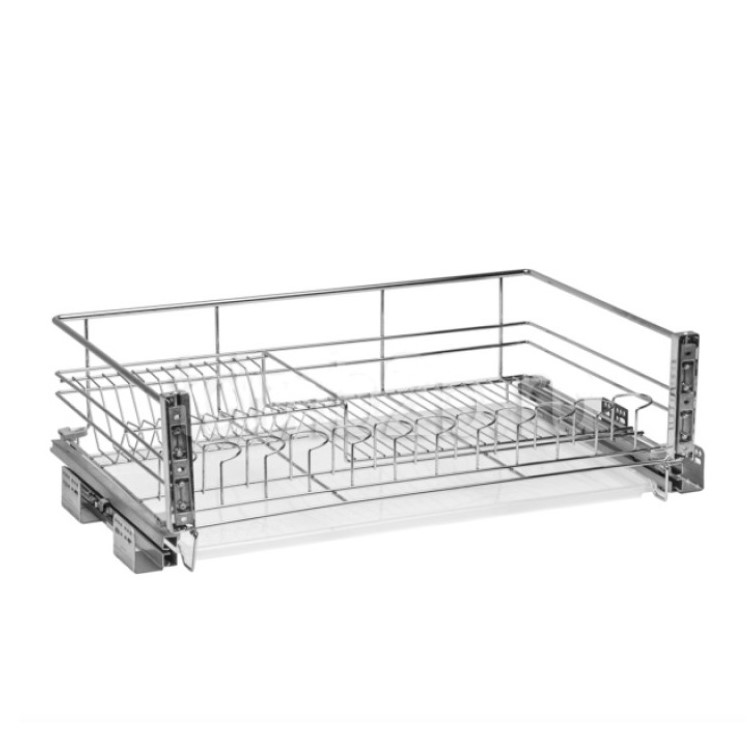 Корзина выкатная 800 мм с креп.к фасаду для посуды с поддоном с дов.765*450*215 LS1/800CK/D купить в магазине мебельной фурнитуры https://rmkmasterium.ru/