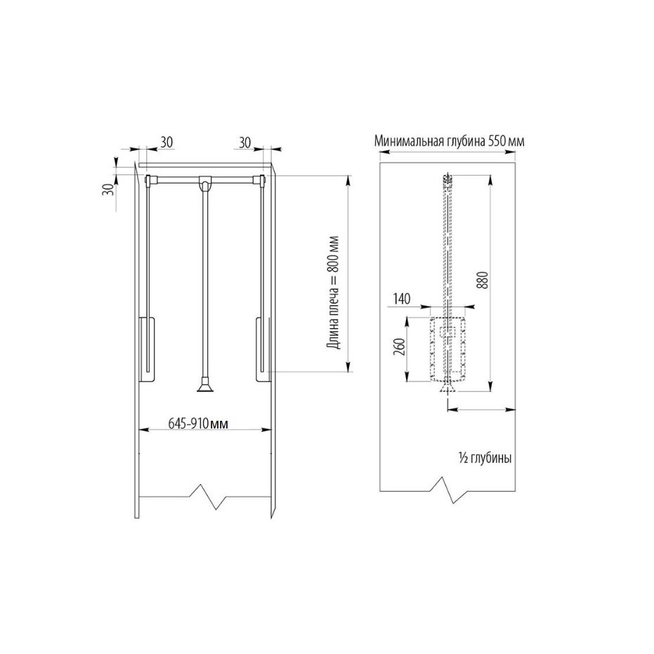 Телескопическая штанга перед установкой в шкаф регулируется в пределах 600-830 см.