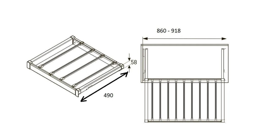 Ширина установки вешалки регулируется в диапазоне 860 - 918 мм.