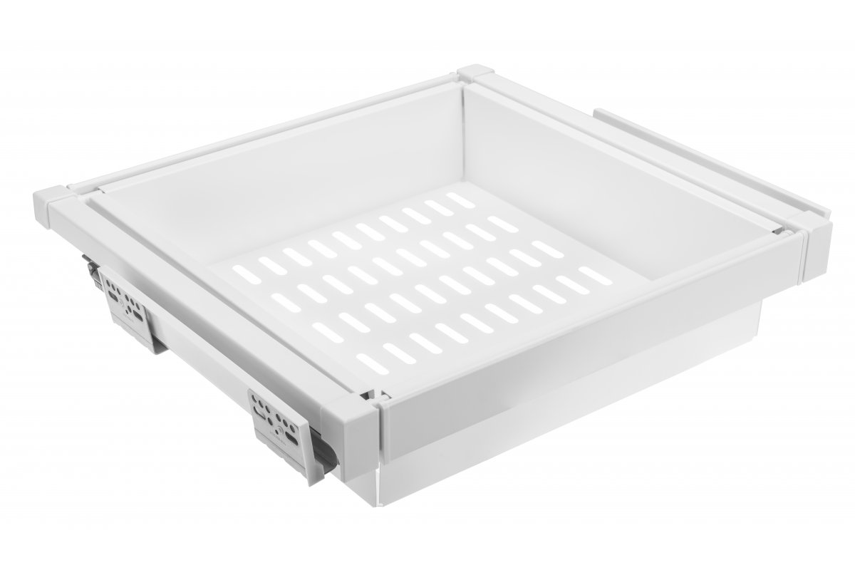 КОРЗИНА ДЛЯ БЕЛЬЯ ELITE ПЕРФОРИРОВАННАЯ 800 ММ С ДОВОДЧИКОМ, ЦВЕТ БЕЛЫЙ (WG-KOSZM80-60) купить в магазине мебельной фурнитуры https://rmkmasterium.ru/