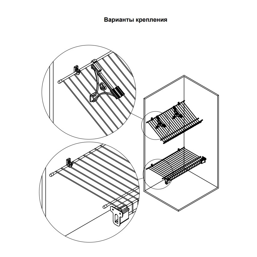 2.) Кронштейн (арт. 301102) и клипса (арт. 301101) – монтаж полки под углом 45 градусов для хранения обуви.