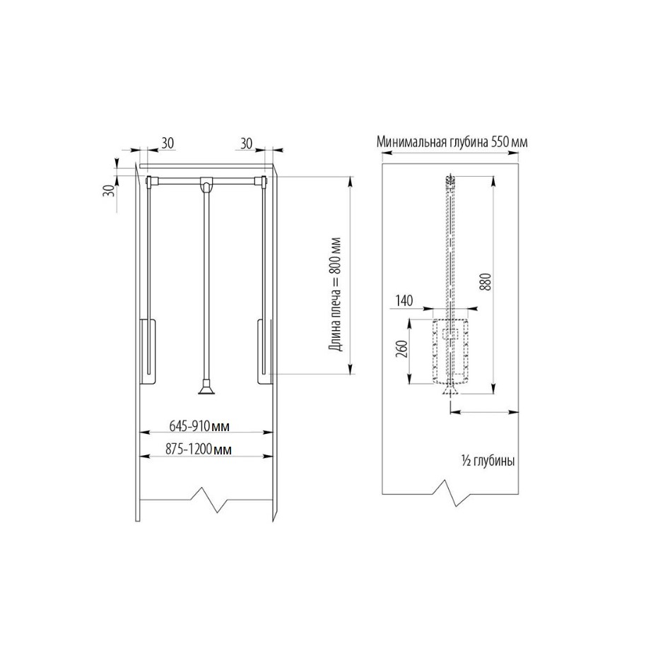 Телескопическая штанга перед установкой в шкаф регулируется в пределах 600-830 см.