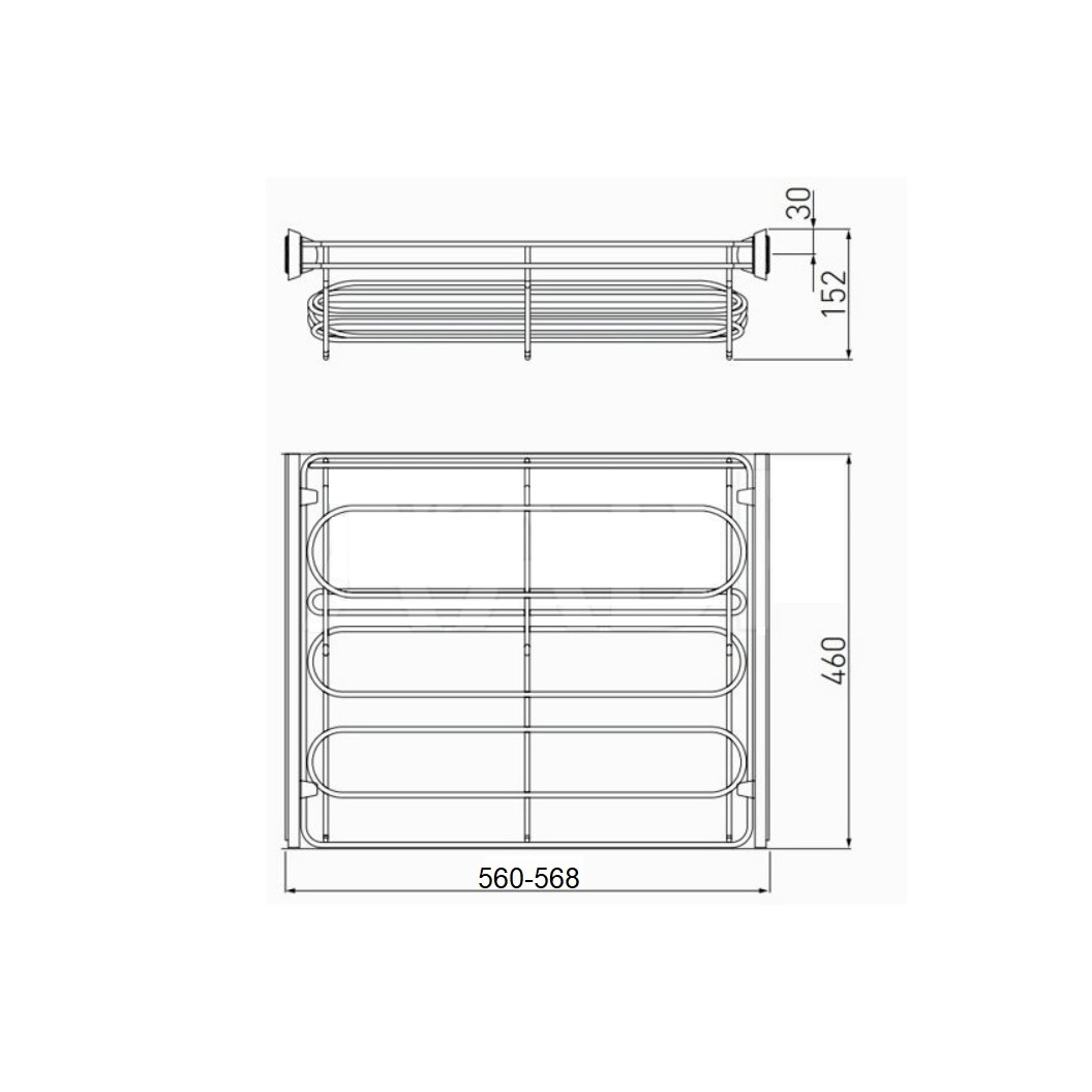 Ширина установки полки регулируется в диапазоне 560 - 568 мм.