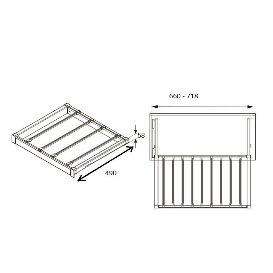 Ширина установки вешалки регулируется в диапазоне 660 - 718 мм.