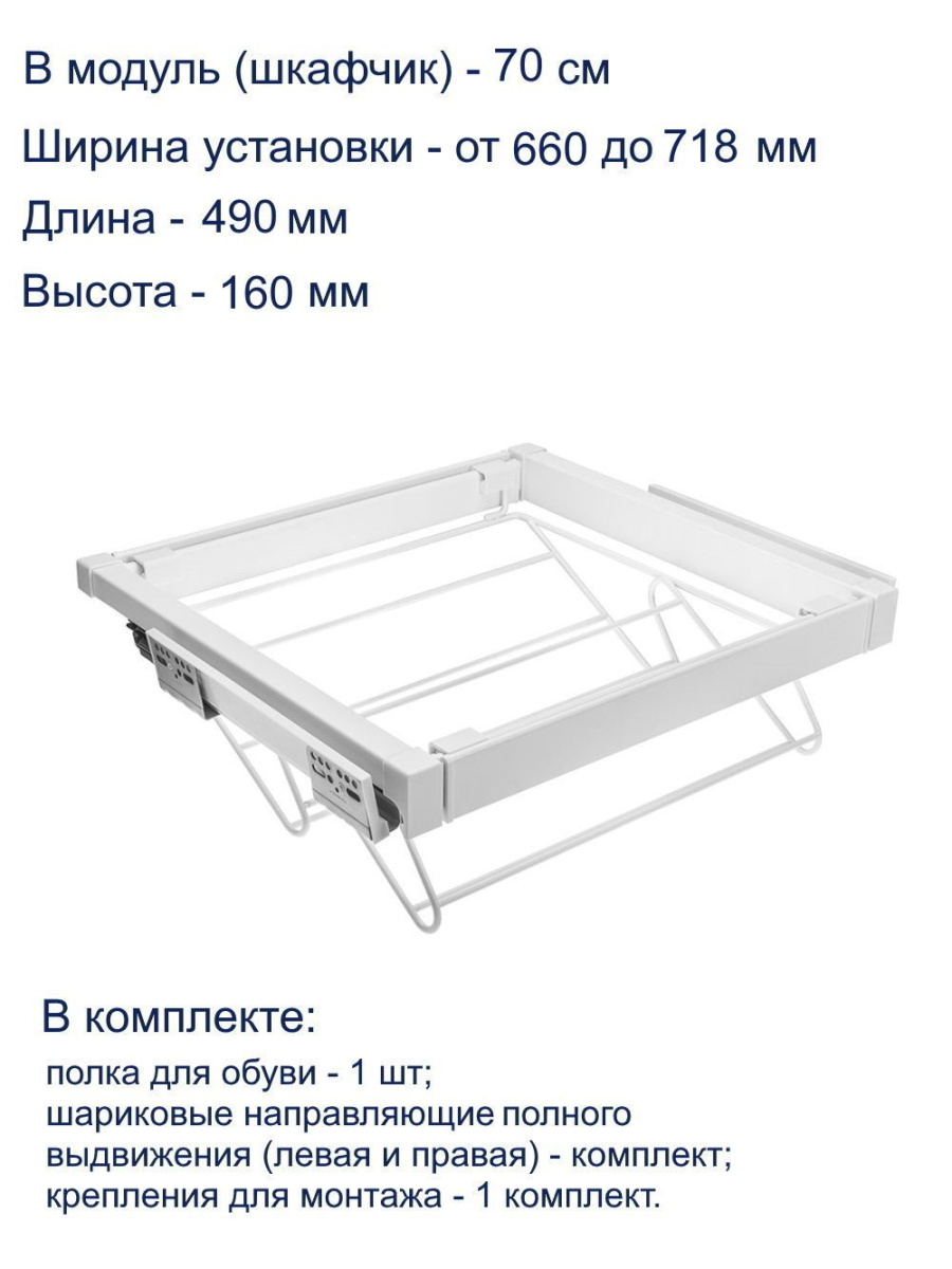 Ширина установки полки регулируется в диапазоне 560 - 618 мм.