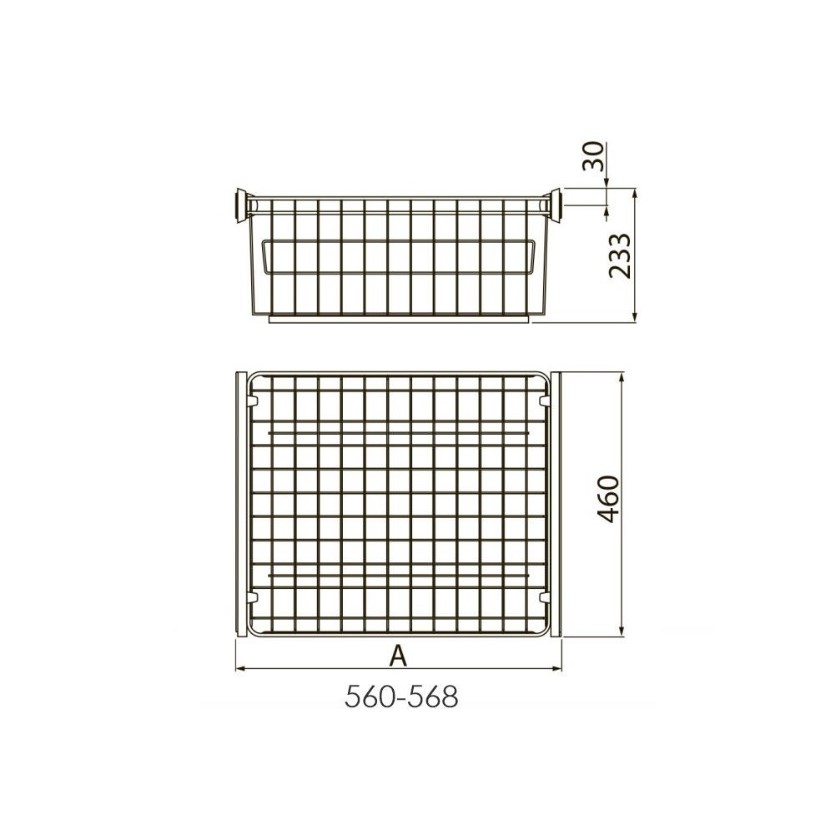 Ширина корзины при монтаже регулируется в диапазоне 560-568 мм.
