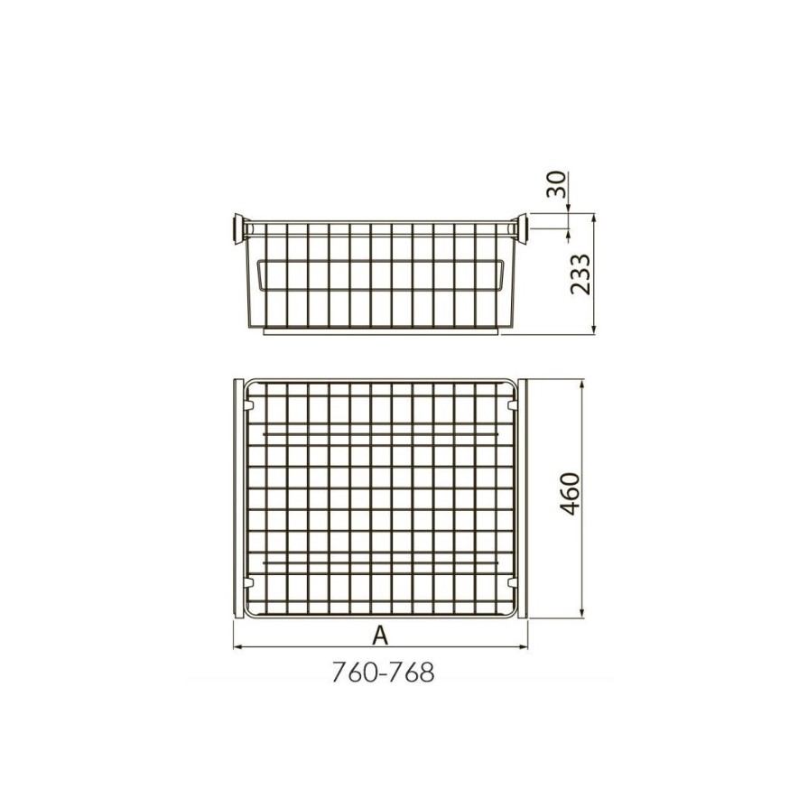 Ширина корзины при монтаже регулируется в диапазоне 760-768 мм.