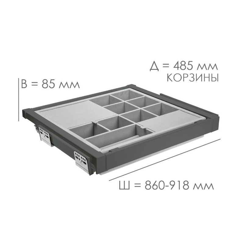 Корзина предназначена для модуля с шириной фасада 900 мм.