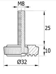 Опора резьбовая регулируемая ORR-08M D32 М8х25мм черная купить в магазине мебельной фурнитуры https://rmkmasterium.ru/