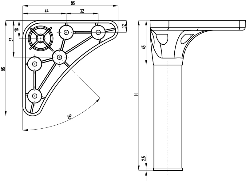 Опора нерегулируемая Х 042 100 RAL 9005 Черный матовый купить в магазине мебельной фурнитуры https://rmkmasterium.ru/