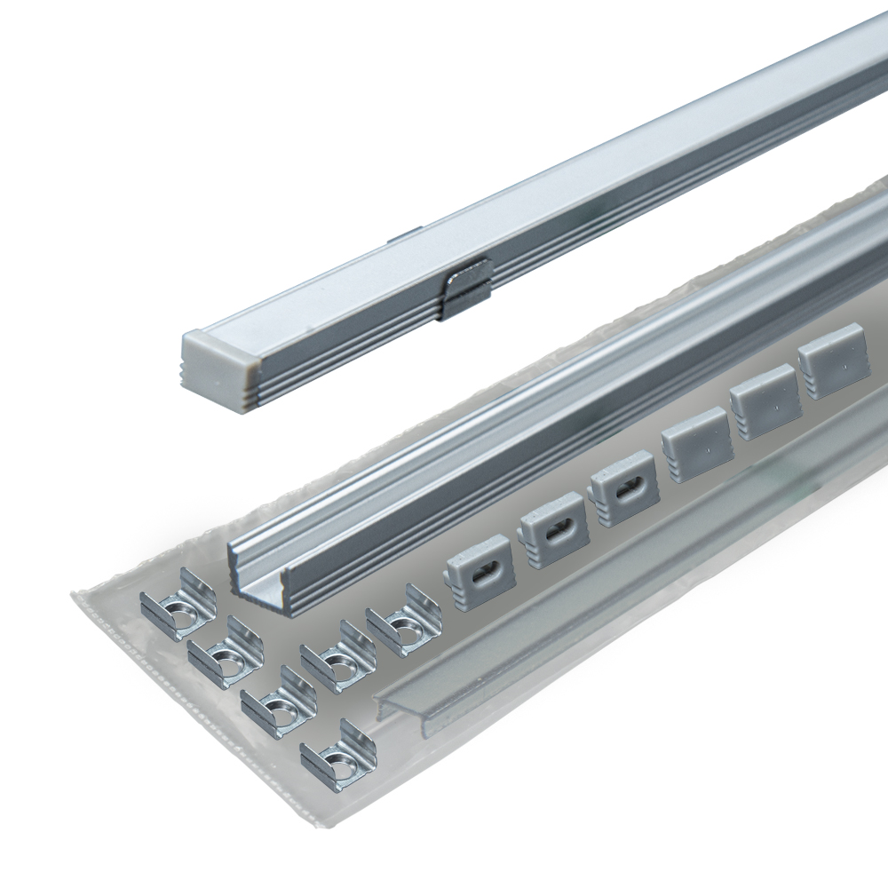Профиль L-3м, диффузор молочный, клипса металлическая - 6 шт, торцевая заглушка с отверстием-3 шт, торцевая заглушка закрытая-3шт