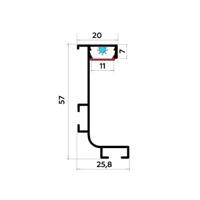 Светодиодная лента (приобретаемая отдельно) наклеивается внутрь специального канала в профиле и закрывается защитным пластиковым профилем-крышкой. Подходит лента SMD 5050 IP35. Рассеиватель из матового белого пластика длиной 2 м входит в комплект системы.