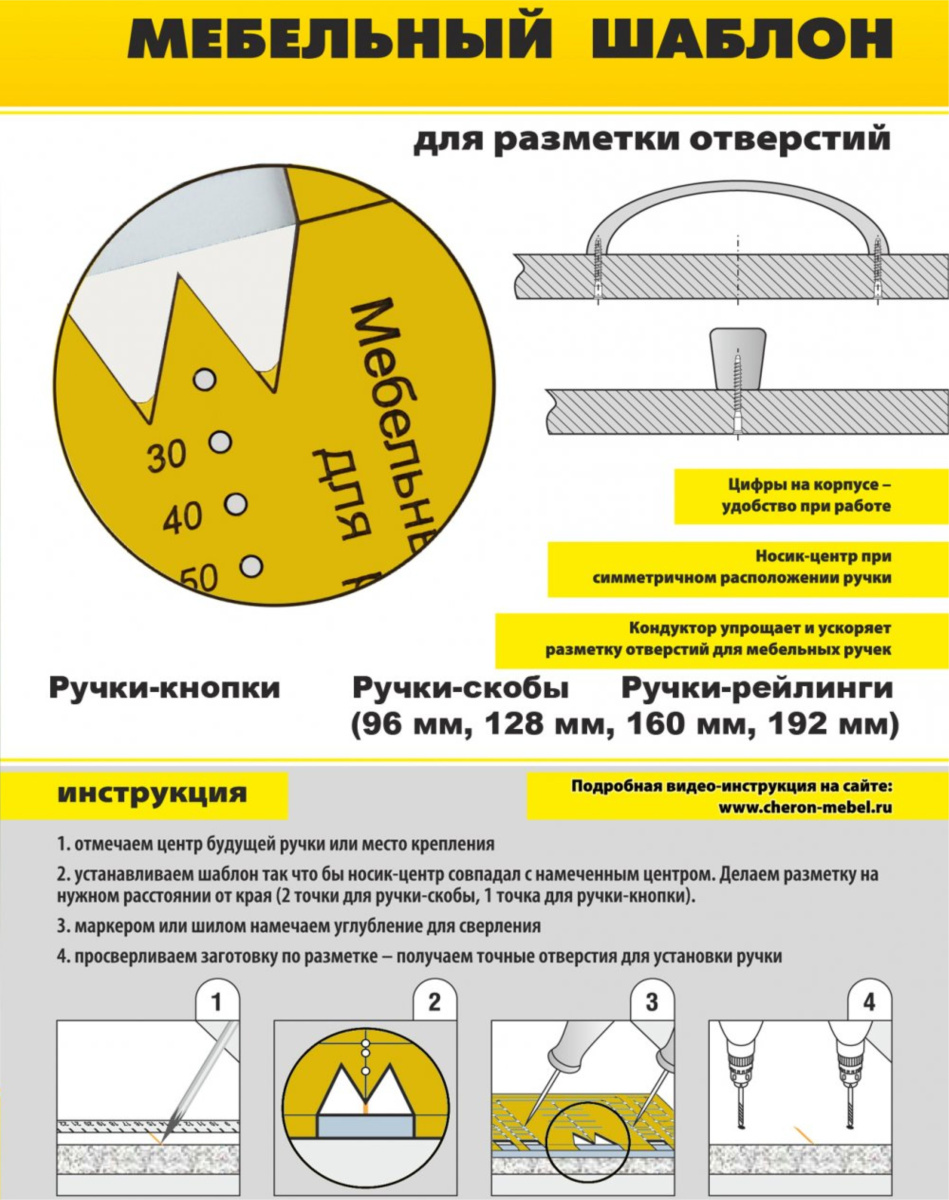 Шаблон для разметки отверстий под ручки-кнопки и скобы (96,128,160,192мм.) МШ-22 купить в магазине мебельной фурнитуры https://rmkmasterium.ru/