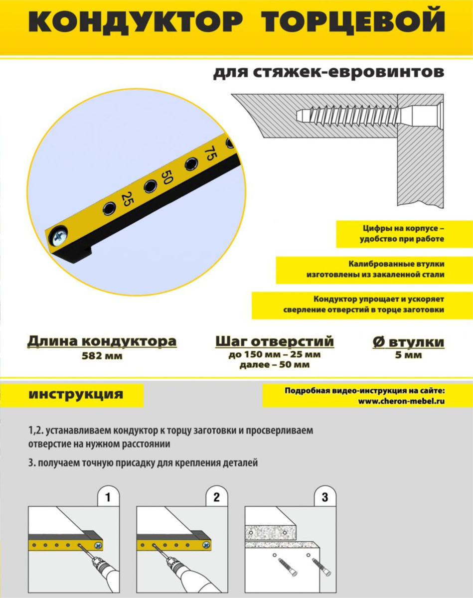 Кондуктор применим для соединения плит на "евровинт"/"конфирмат"