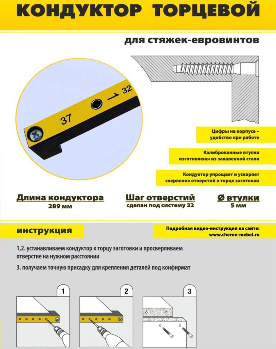 Кондуктор применим для соединения плит на "евровинт"/"конфирмат".