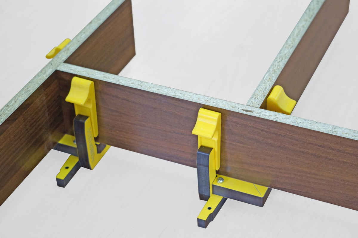 Устройство со стандартным клином рассчитано на плиты 16 и 18 мм, но можно использовать и более тонкий материал при использовании дополнительных проставок под клин (в комплект не входят).