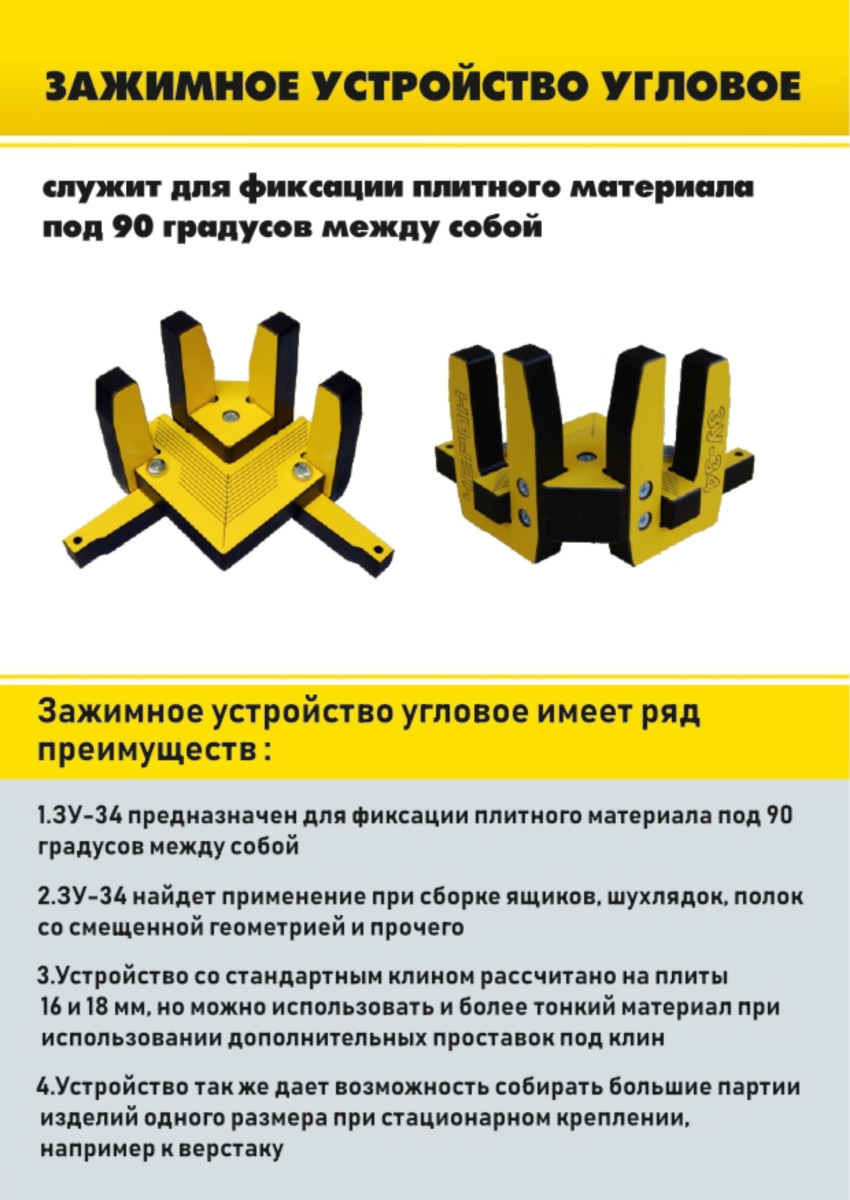 ЗУ-34 найдет применение при сборке ящиков, шухлядок, полок со смещенной геометрией и прочего.