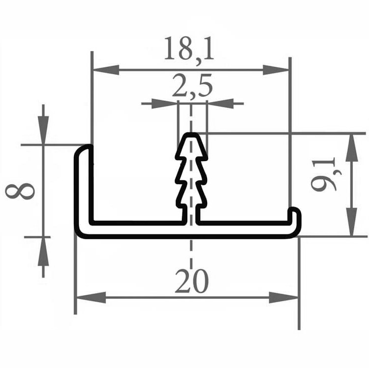 Профиль RD 11 Врезной 18 мм прямой (L 2950 мм) купить в магазине мебельной фурнитуры https://rmkmasterium.ru/