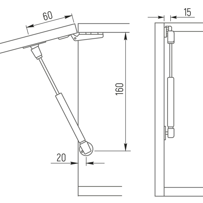 Газовый мини-подъёмник GL-80160 80N предназначен для небольших фасадов верхних кухонных и корпусных шкафов. Благодаря усилию 80 N подъёмник подходит для фасадов средней лёгкости, обеспечивая плавное открывание и удержание дверцы в верхнем положении.