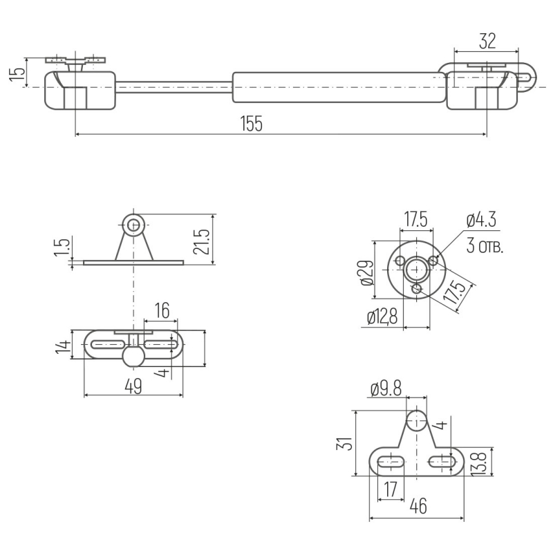 Газлифт комплектуется шаровыми держателями, легко устанавливается и подходит для фасадов из ДСП и МДФ.