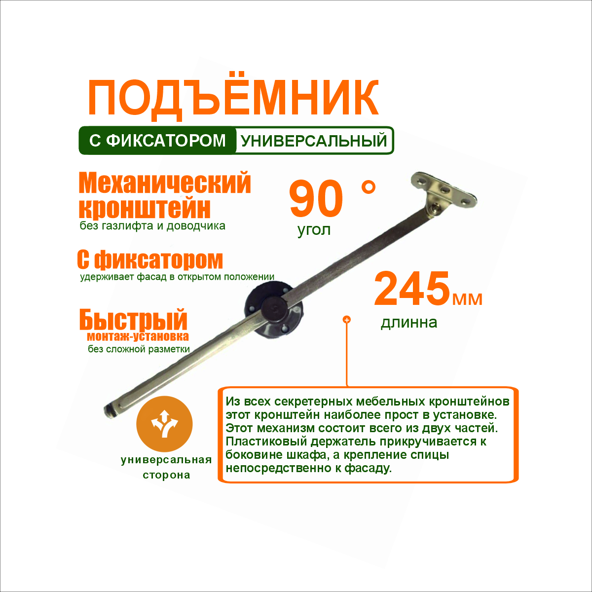 Этот механизм состоит всего из двух частей. Пластиковый держатель прикручивается к боковине шкафа, а крепление
