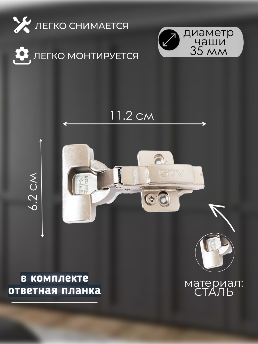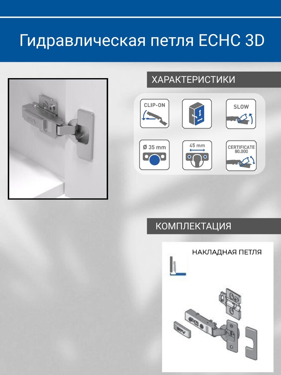 Эти накладные петли идеально подходят для угловых шкафов, где требуется максимальная функциональность и эстетичность. Петля с доводчиком позволяет дверям закрываться плавно и бесшумно, что особенно важно в жилых помещениях. Установка таких петель не требует специальных навыков, что делает их доступными для самостоятельного монтажа.