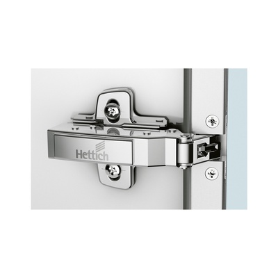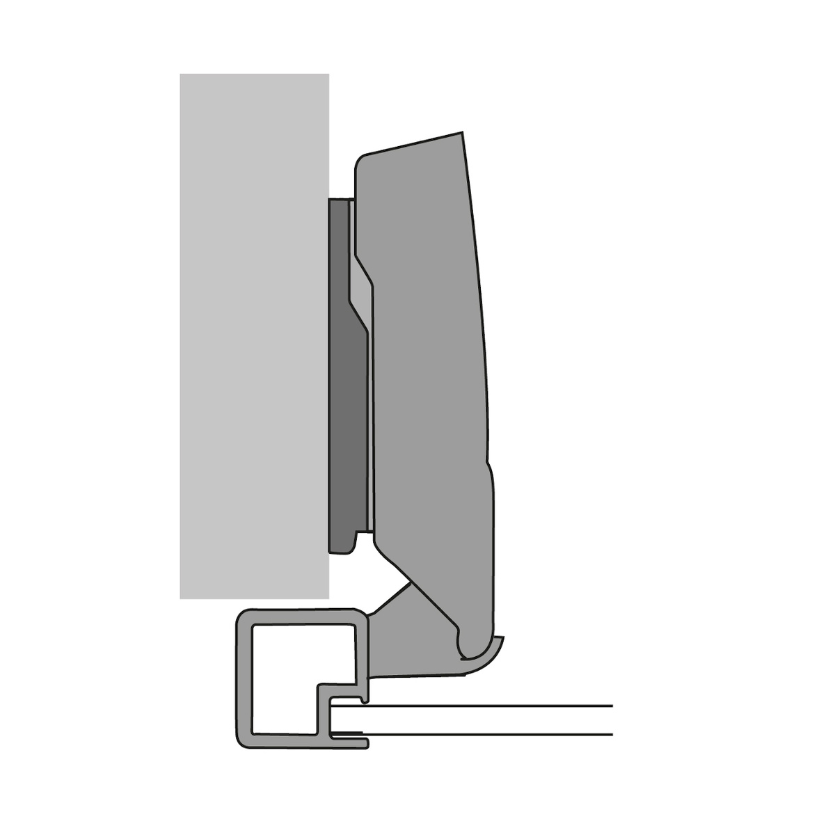 Петля Sensys 8668 TA32 предназначена для накладных фасадов в алюминиевых рамках шириной 19 мм. Обеспечивает угол открывания 95° и применяется в мебели без ручек совместно с системами Push-to-Open.