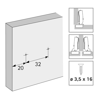 Монтаж под прикручивание с винтами с потайной головкой 3,5 мм ø x 16 мм