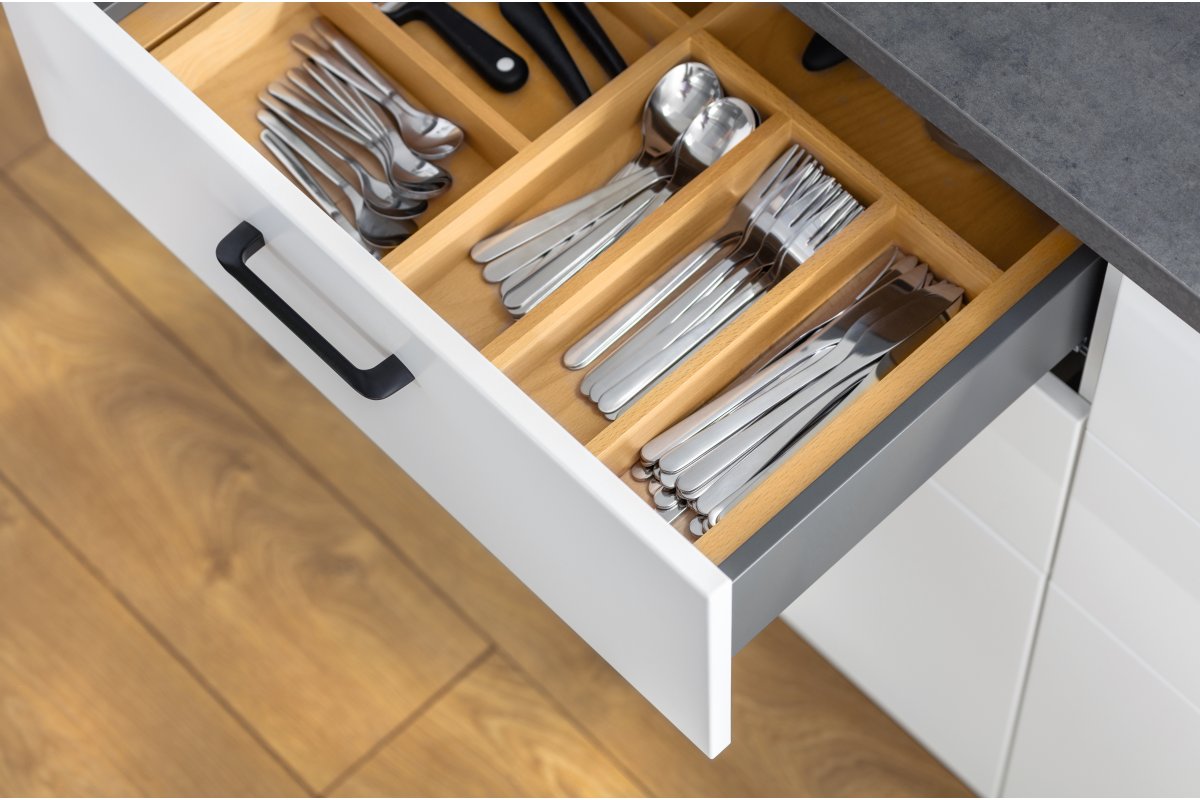Максимальная вместимость ящика, достигнутая посредством нижнего монтажа направляющих и минимальной толщины боковых панелей.