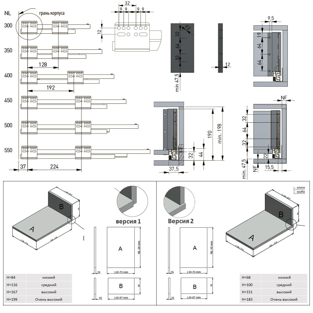 Комплект ящика AXIS PRO H-168мм L-450мм Антрацит купить в магазине мебельной фурнитуры https://rmkmasterium.ru/