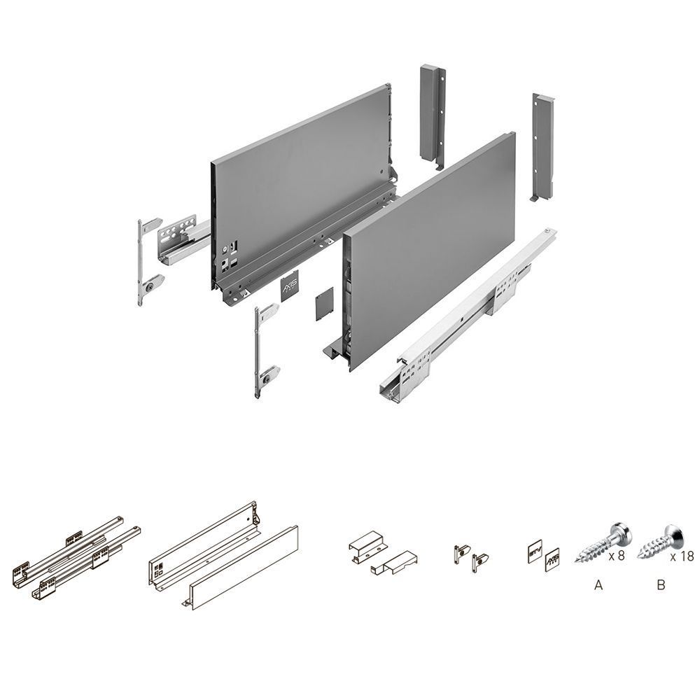 Комплект ящика AXIS PRO H-200мм L-500мм Антрацит купить в магазине мебельной фурнитуры https://rmkmasterium.ru/