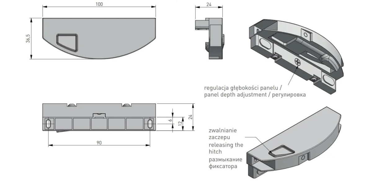 В случае необходимости задвигать/выдвигать внутренний ящик отдельно от общего фасада, фиксатор легко разомкнуть, нажав на кнопку.
