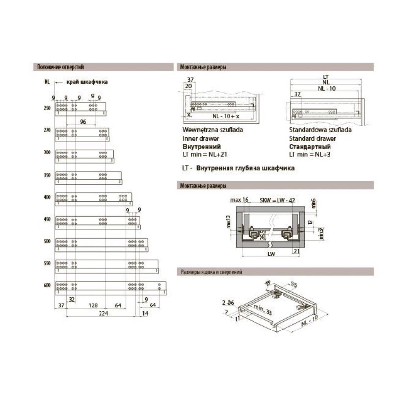 Установка осуществляется не на боковины ящика, а под его дно.