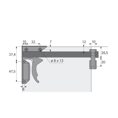 Для надежного крепления без инструментов направляющей Quadro и выдвижных полок (или сходных конструкций)