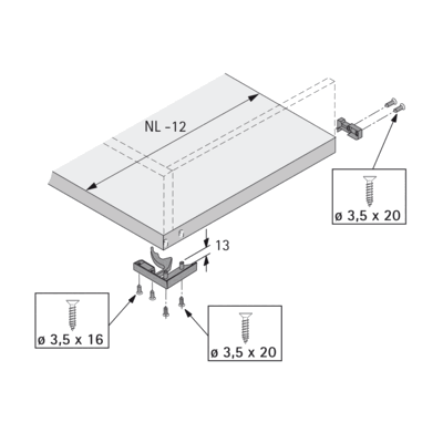 Длина выдвижной полки должна быть уменьшена на 12 мм (NL - 12 мм)