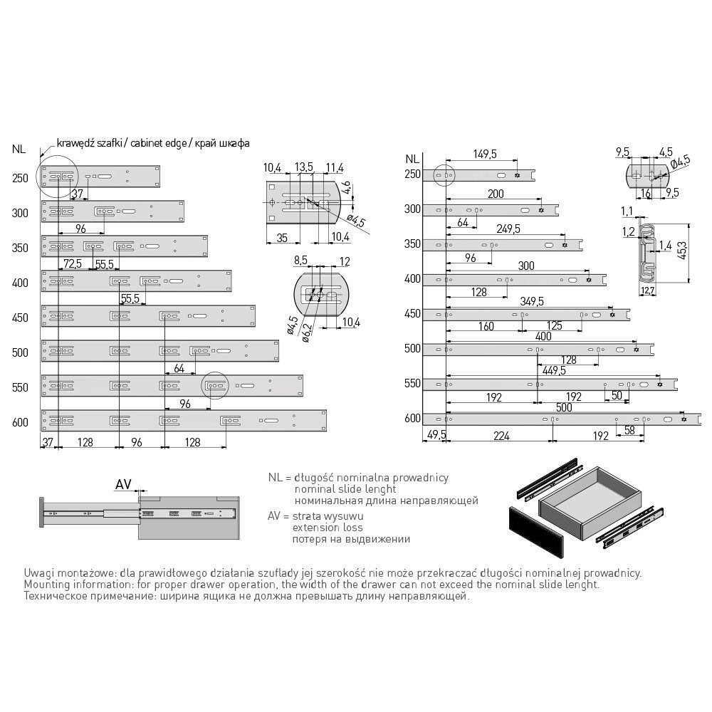 Напр.шариковые PK-L-0H45-550 30кг с доводчиком Versalite Plus GTV купить в магазине мебельной фурнитуры https://rmkmasterium.ru/