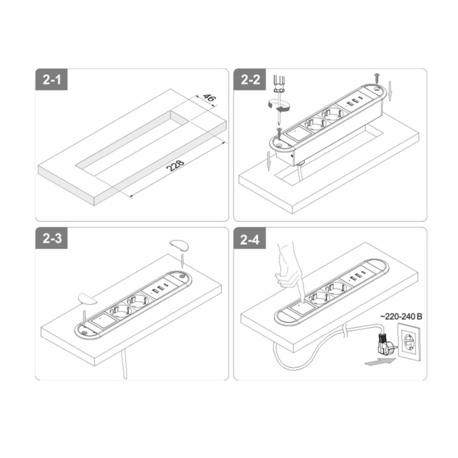 Установочное отверстие: 228х46 мм;
