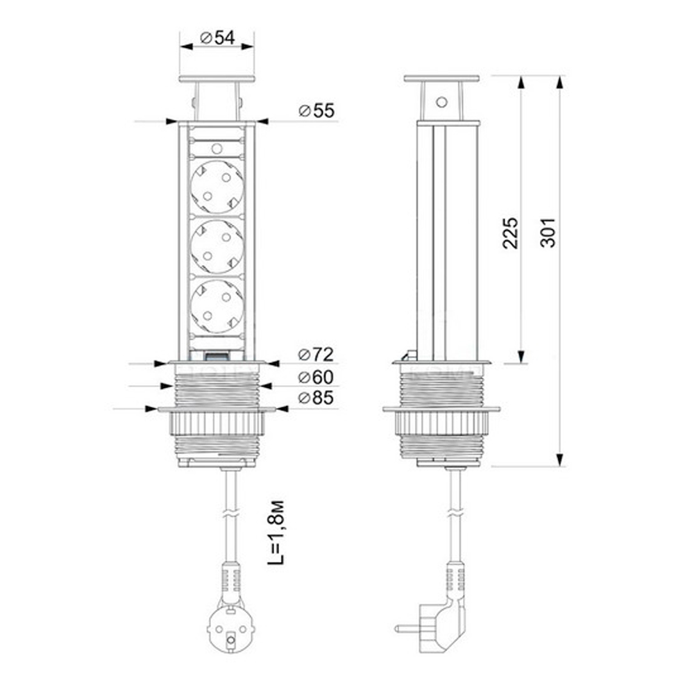 Комплектация: Блок электрических розеток 220V с заземлением (розеточный блок) выдвижной, вертикальный с проводом и вилкой Pop-UP - 1 шт.