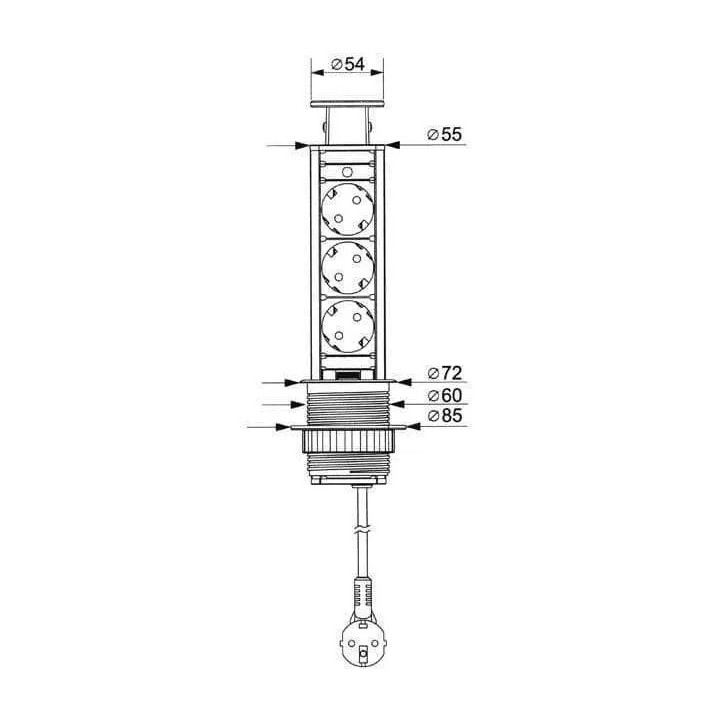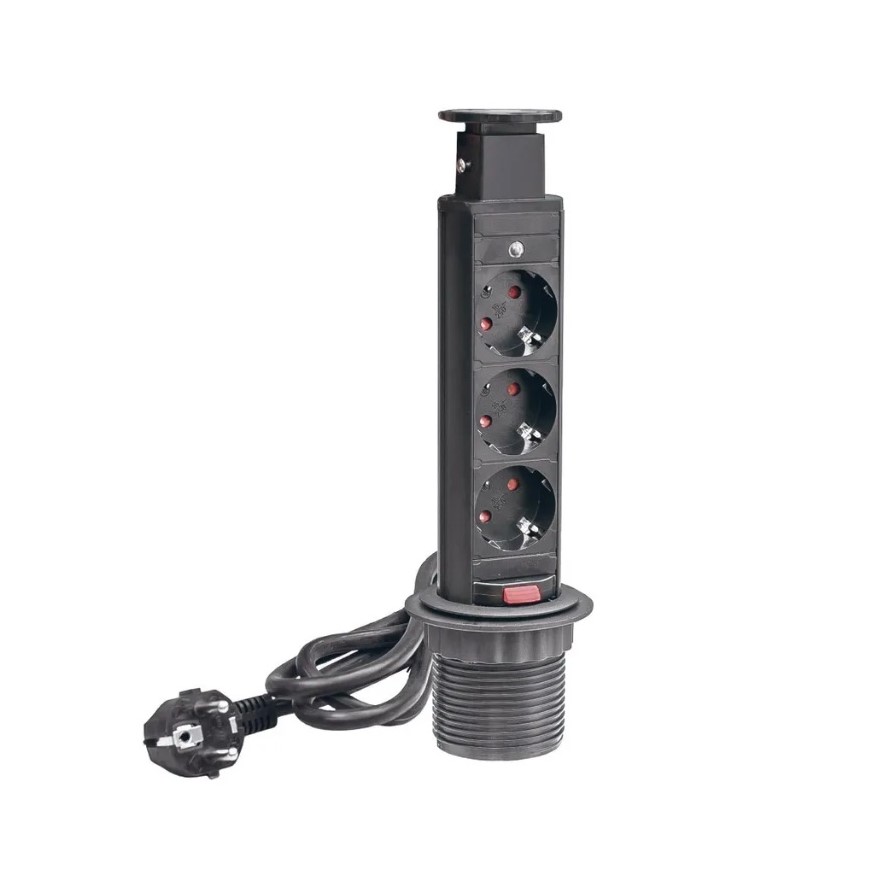Комплектация: блок электрических розеток 220V выдвижной, вертикальный с проводом и вилкой Pop-UP comp - 1 шт.