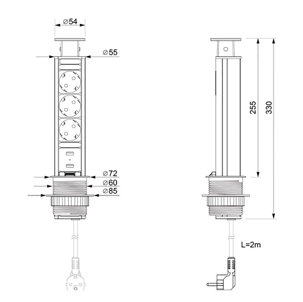 Подключается к сети 230 В, с помощью встроенного провода 1,8 м и вилки.