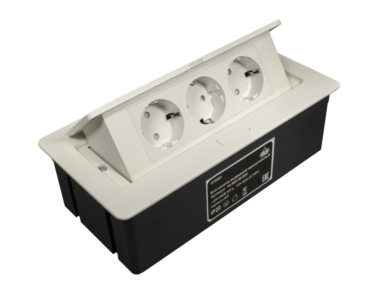 Для приведения в рабочую готовность необходимо нажать кнопку на корпусе и тем самым открыть рабочую зону с розетками.