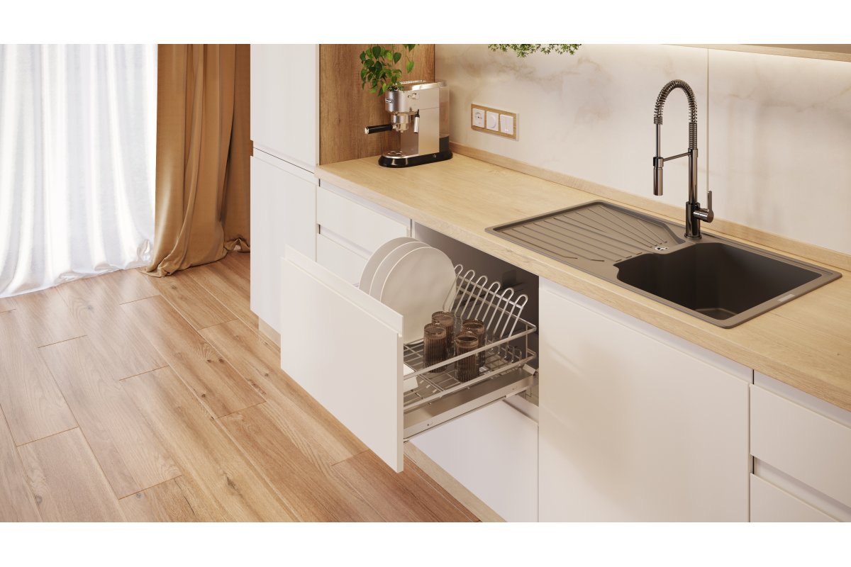 В конструкции посудосушителя предусмотрена регулировка фасада: