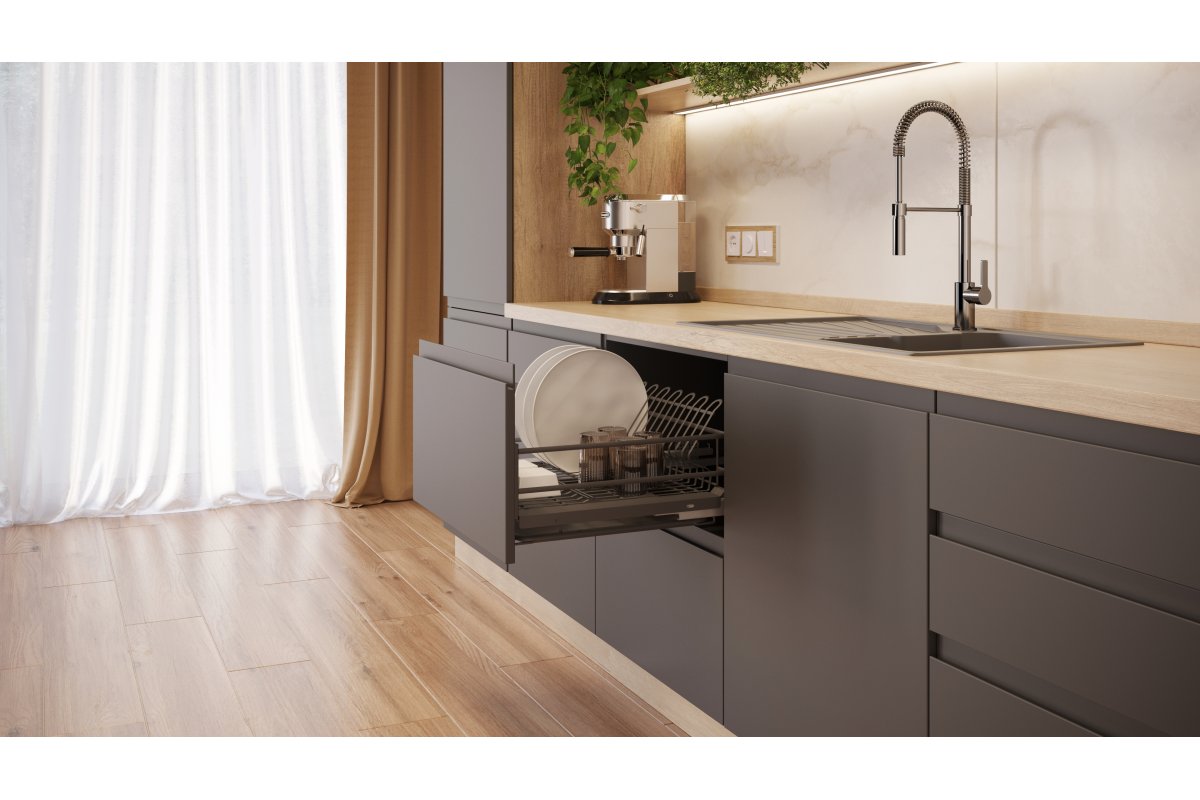 В конструкции посудосушителя предусмотрена регулировка фасада: