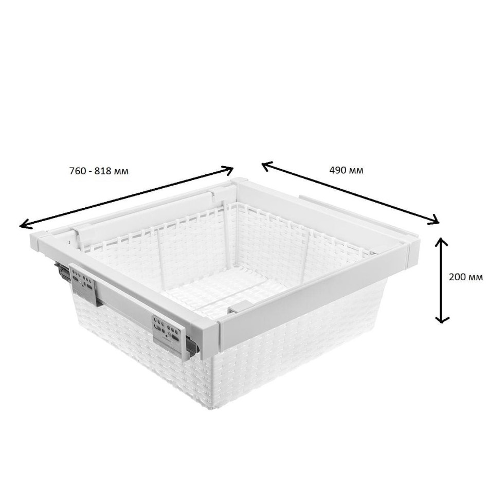 Ширина корзины регулируется в диапазоне 760 - 818 мм.